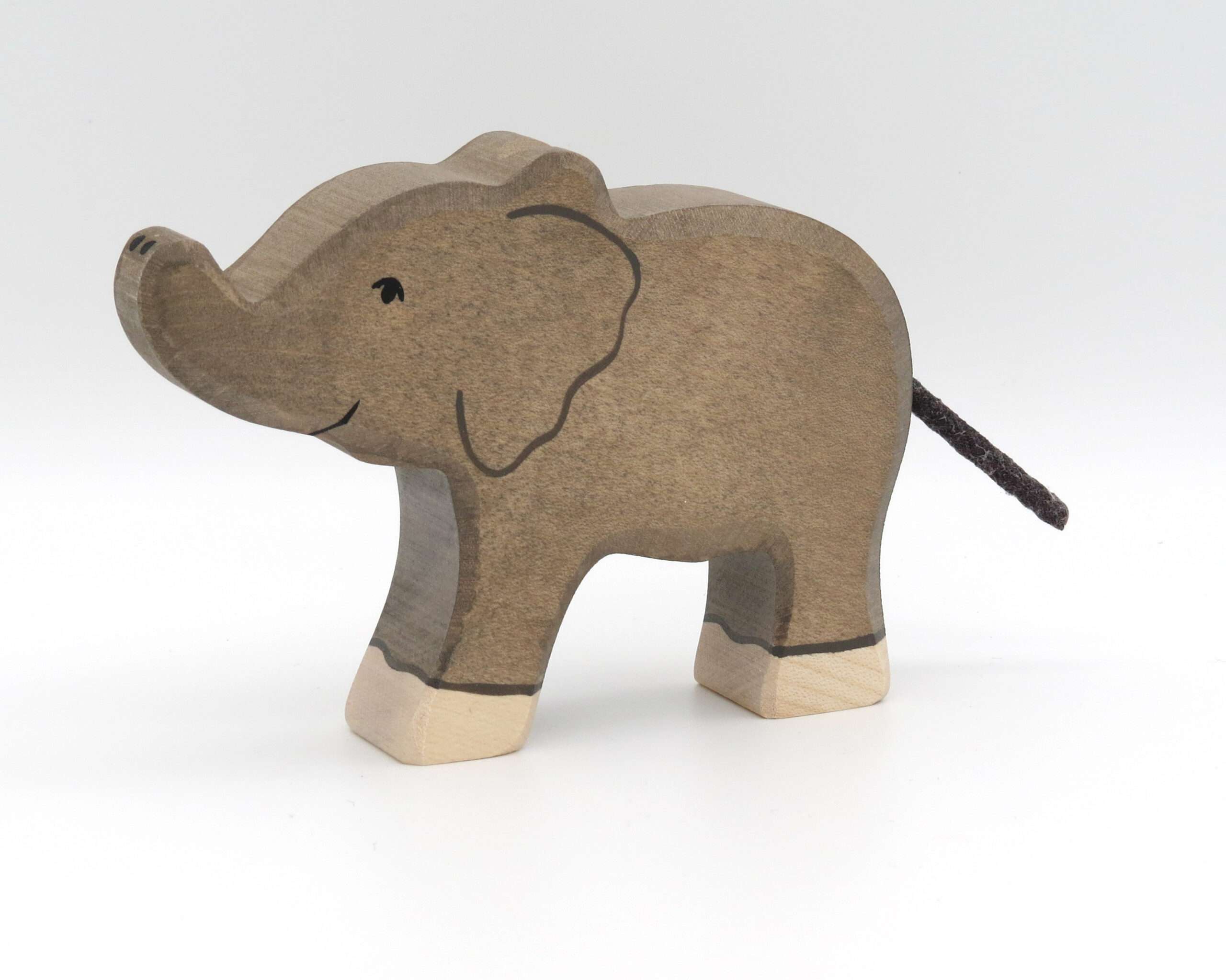 Der kleine Elefant mit hochgestrecktem Rüssel und einem Lächeln im Gesicht ist handgearbeitet und handbemalt und gehört zu einer ganzen Serie von handgearbeiteten Tieren. Das Holz ist schön glatt gearbeitet und lässt sich wie ein Handschmeichler gut in der Hand halten. Die HOLZTIGER-Figuren stehen seit vielen Jahren für Spielwert und höchste Qualität – „Made in Europe“. Sie werden einzeln aus massivem Ahorn- und Buchenholz handgearbeitet, sanft abgerundet und mit Farben auf Wasserbasis bemalt.